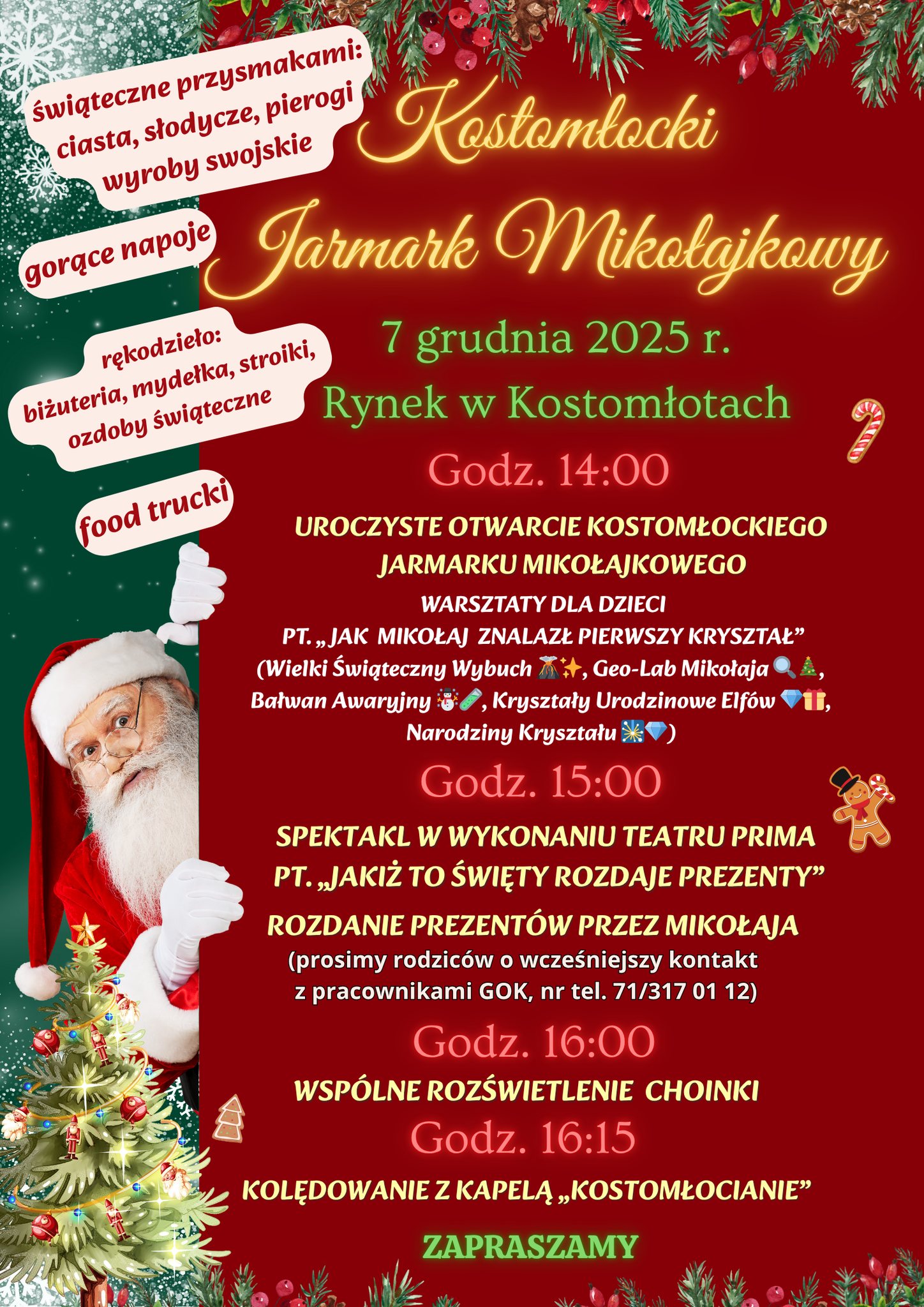 W niedzielę, 7 grudnia 2025 roku, na Rynku w Kostomłotach odbędzie się Kostomłocki Jarmark Mikołajkowy. Start wydarzenia zaplanowano na godz. 14:00.