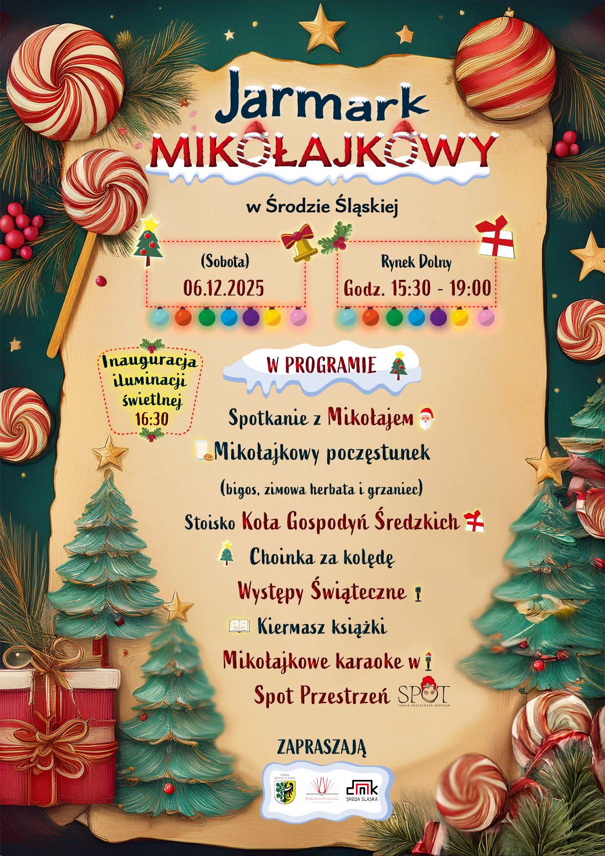 Serdecznie zapraszamy mieszkańców i gości do wspólnego spędzenia przedświątecznego czasu podczas Smakowitego Jarmarku Mikołajkowego, który odbędzie się w sobotę, 6 grudnia w Rynku Dolnym. Startujemy o15:30.